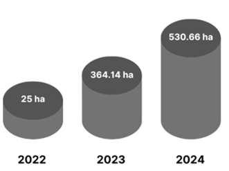 Tendenca vjetore e sipërfaqeve të dhëna me qira për parqe fotovoltaike në Kolonjë dhe Devoll, sipas analizës së All Green Centre